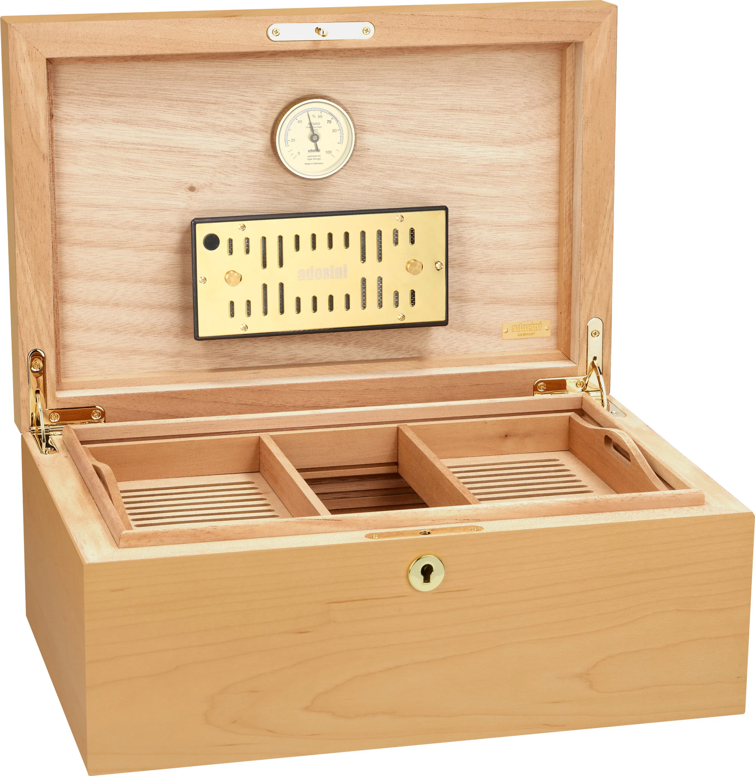 The adorini Humidor European Maple Specially Selected Grande is an elegant Grande-sized humidor from the Specially Selected collection, newly introduced in 2025. The name "Specially Selected" stands for carefully selected real wood veneers of European origin.