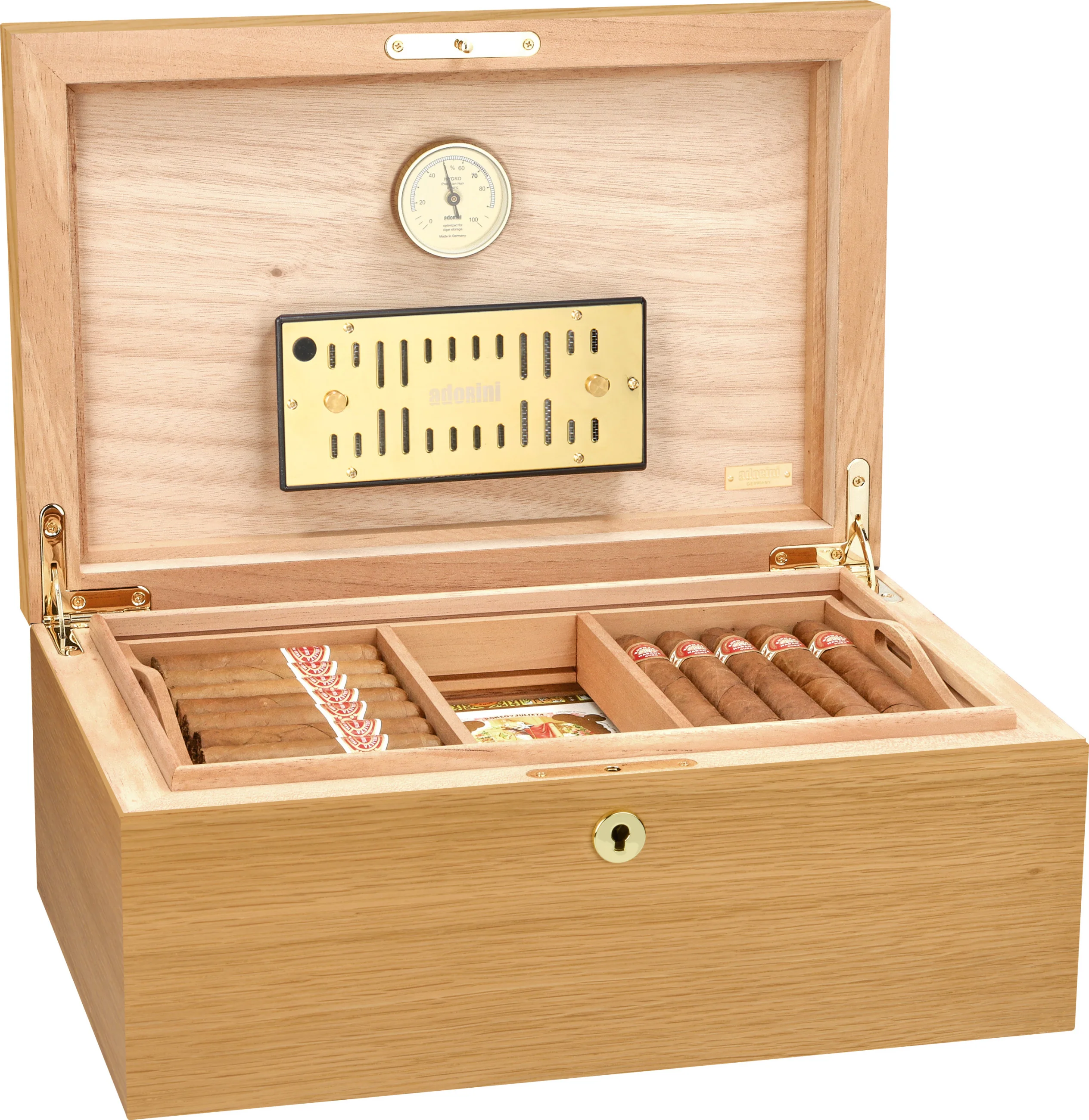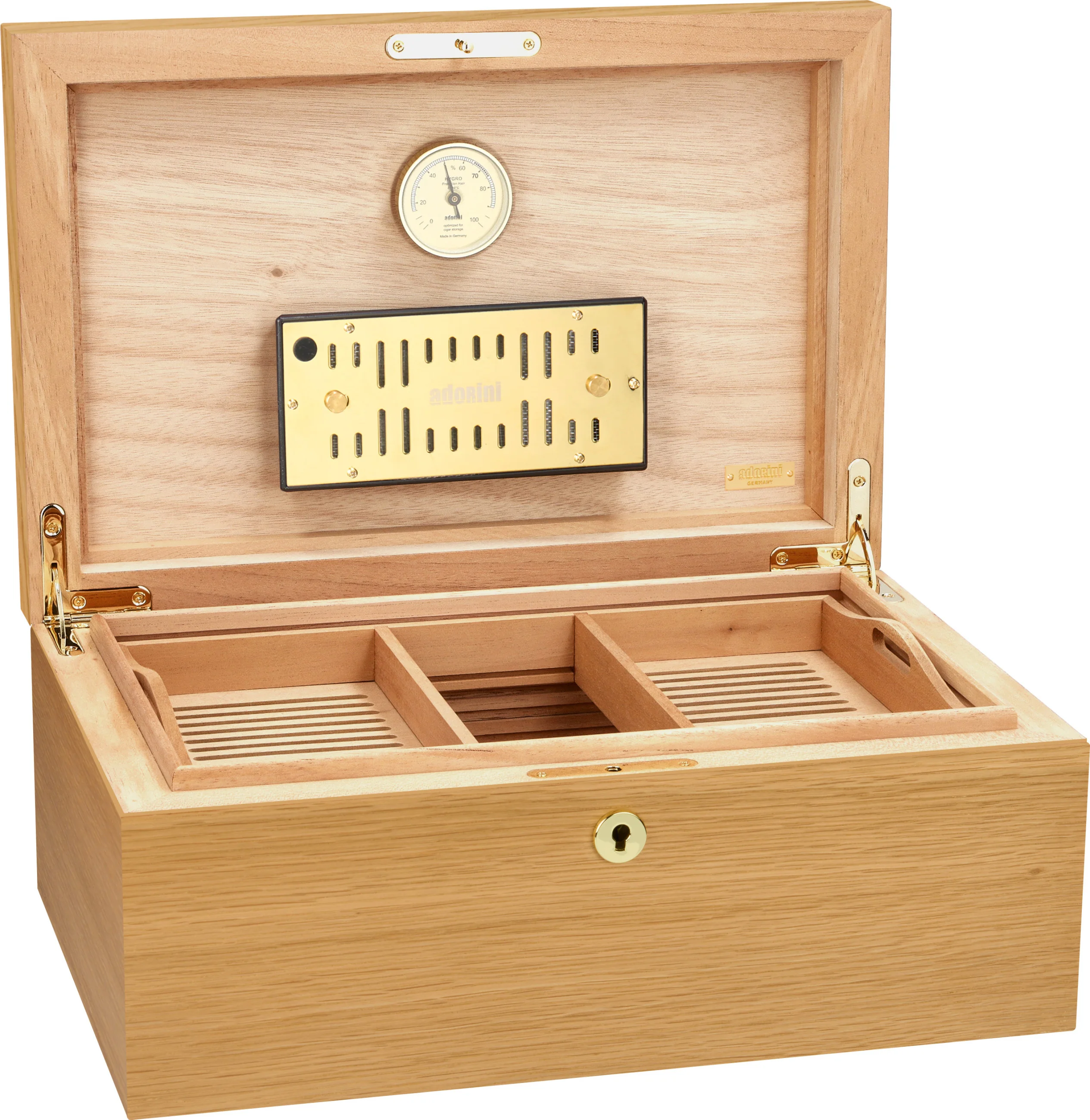 The Oak model impresses with a light beige color with a subtle grain, creating a particularly elegant effect and blending perfectly into any ambiance. The Grande humidors hold up to 150 cigars, offering ample space for the collection of discerning connoisseurs.