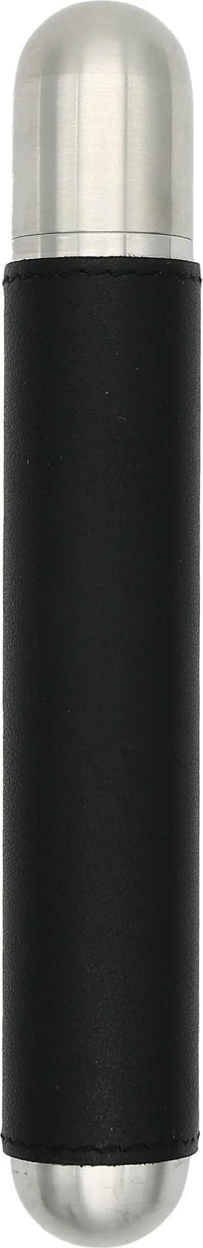 adorini Stainless Steel Cigar Case with Black Leather Cover