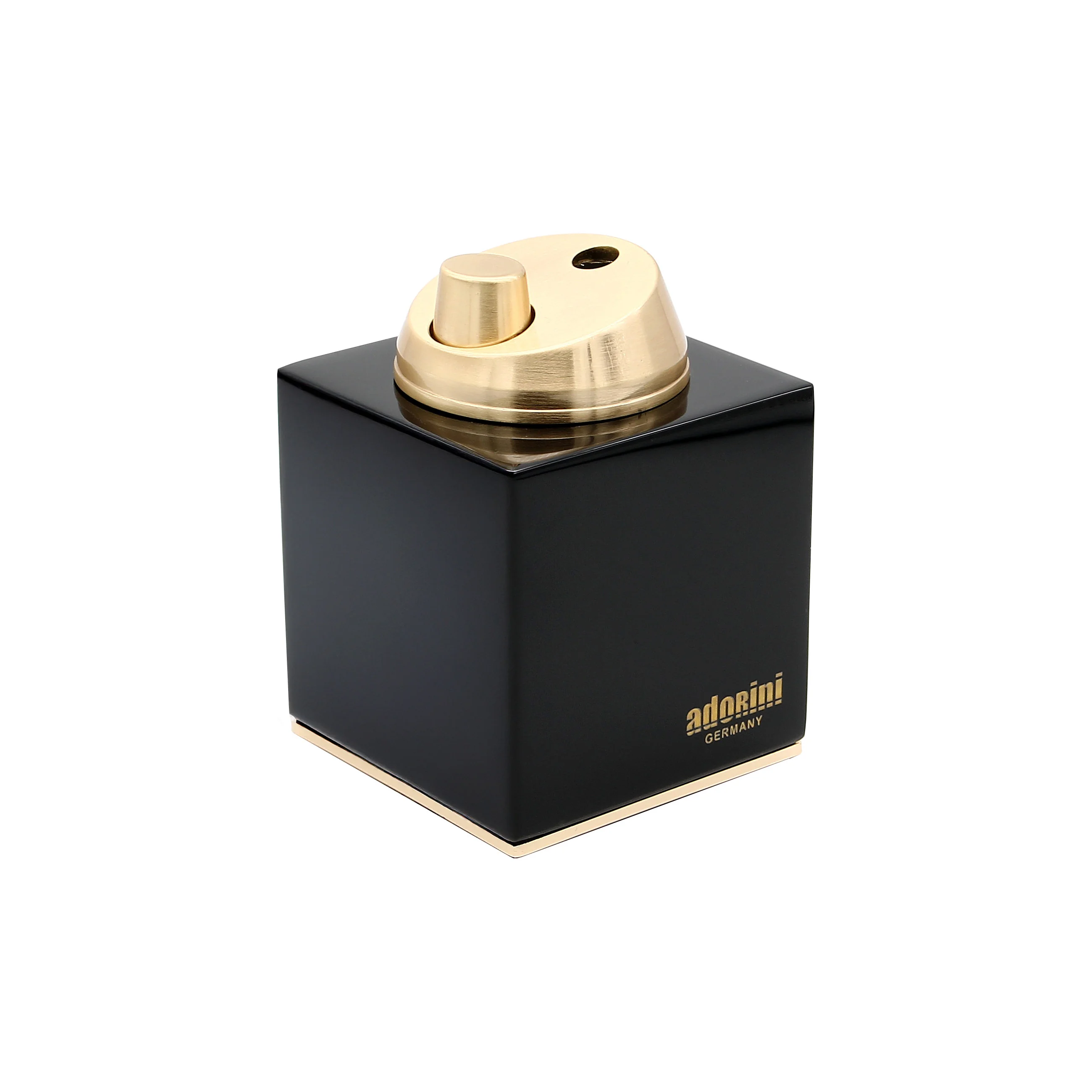 This elegant adorini table lighter with jet flame combines sophisticated design with high-quality functionality. The lighter body made of jet-black, high-gloss lacquered wood ensures an impressive presence, which is perfectly accentuated by the golden ignition and the golden decorative edge at the base.