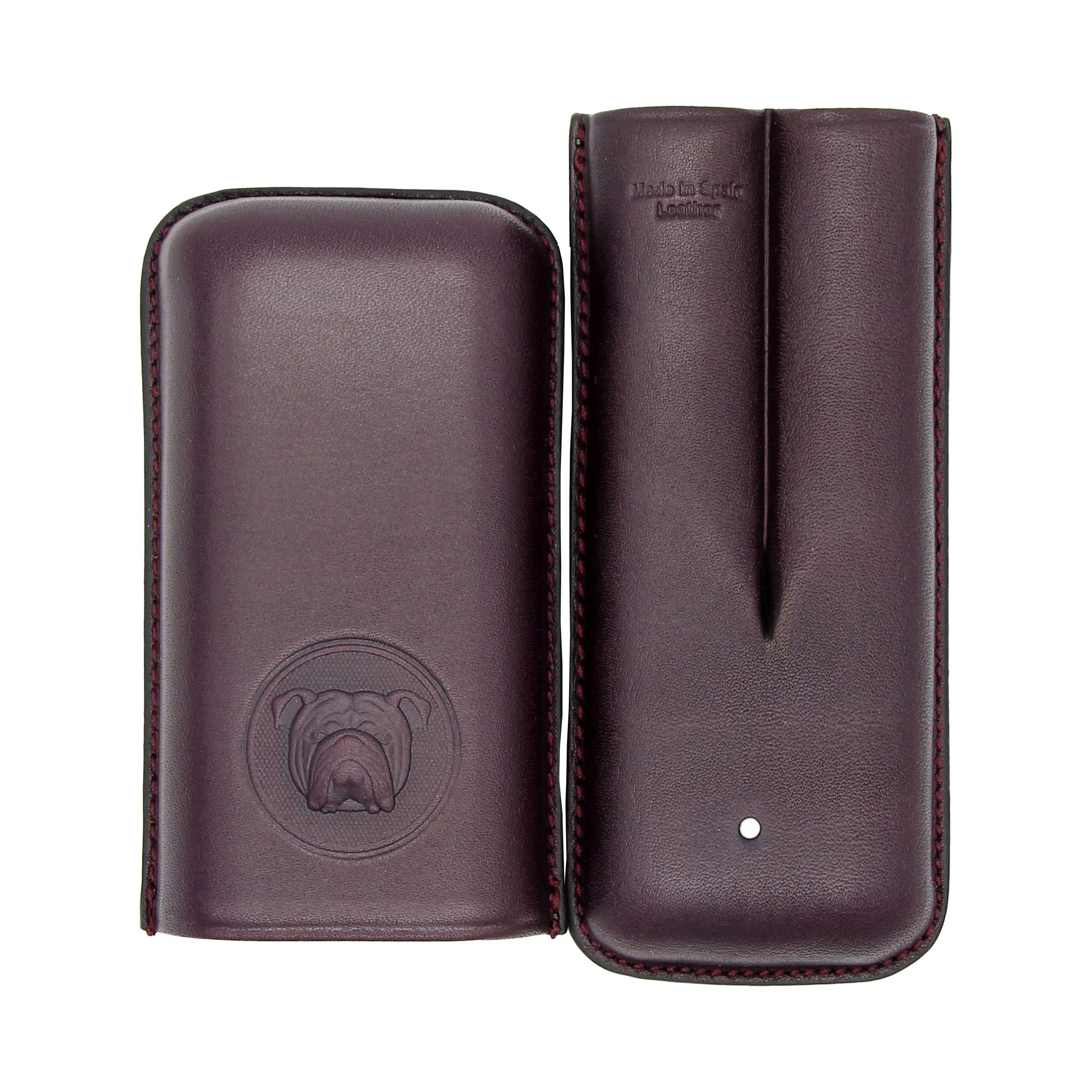 The Bulldog by Dunhill Robusto cigar case in purple combines elegance and durability in a high-quality accessory. Crafted from genuine leather and made in Spain, it impresses with classic craftsmanship and a striking design.