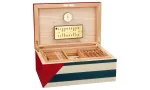 High-end humidor. I love the Cuban flag gloss finish. The humidor arrived well-packed and met my expectations.