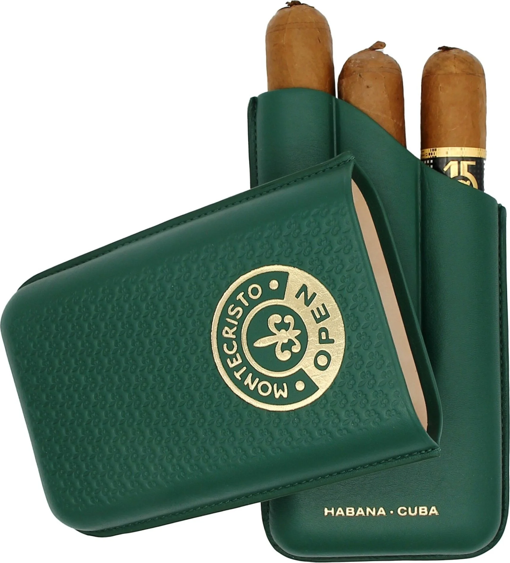 Montecristo Open Leather Cigar Case, Green, for 3 Cigars