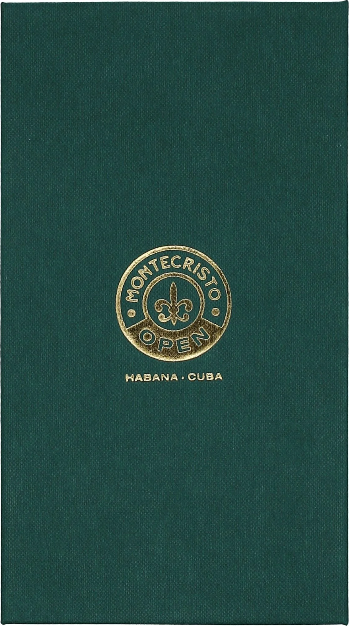 The Montecristo cigar case in sporty green is a luxurious accessory from the Cuban cigar brand Montecristo, specifically designed for the milder Open line. The finely textured leather surface with its embossed fleur-de-lis symbol conveys an authentic, high-quality look. The embossed brand logo, unmistakably Montecristo, adorns the front, lending the case an exclusive air.