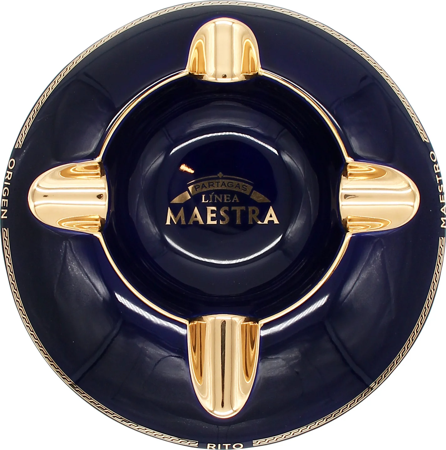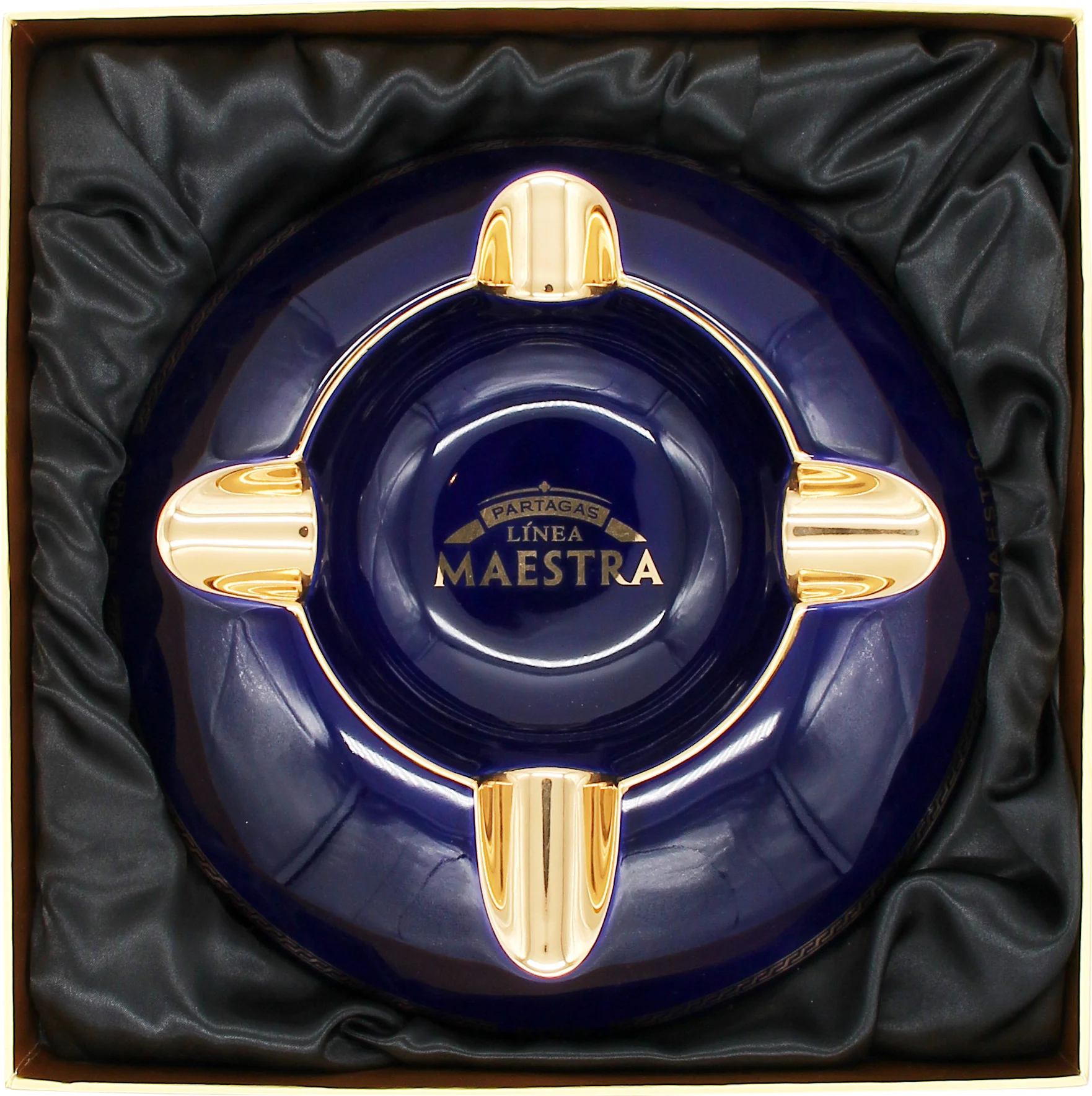 The Partagás Ashtray Línea Maestra is a striking accessory from the prestigious premium line of the Cuban cigar brand Partagás. Finished in deep blue and adorned with elegant gold accents, this ashtray exudes a special exclusivity. Designed by Nelson Alfonso for Habanos S.A., it combines artistic craftsmanship with the brand's signature expressiveness.