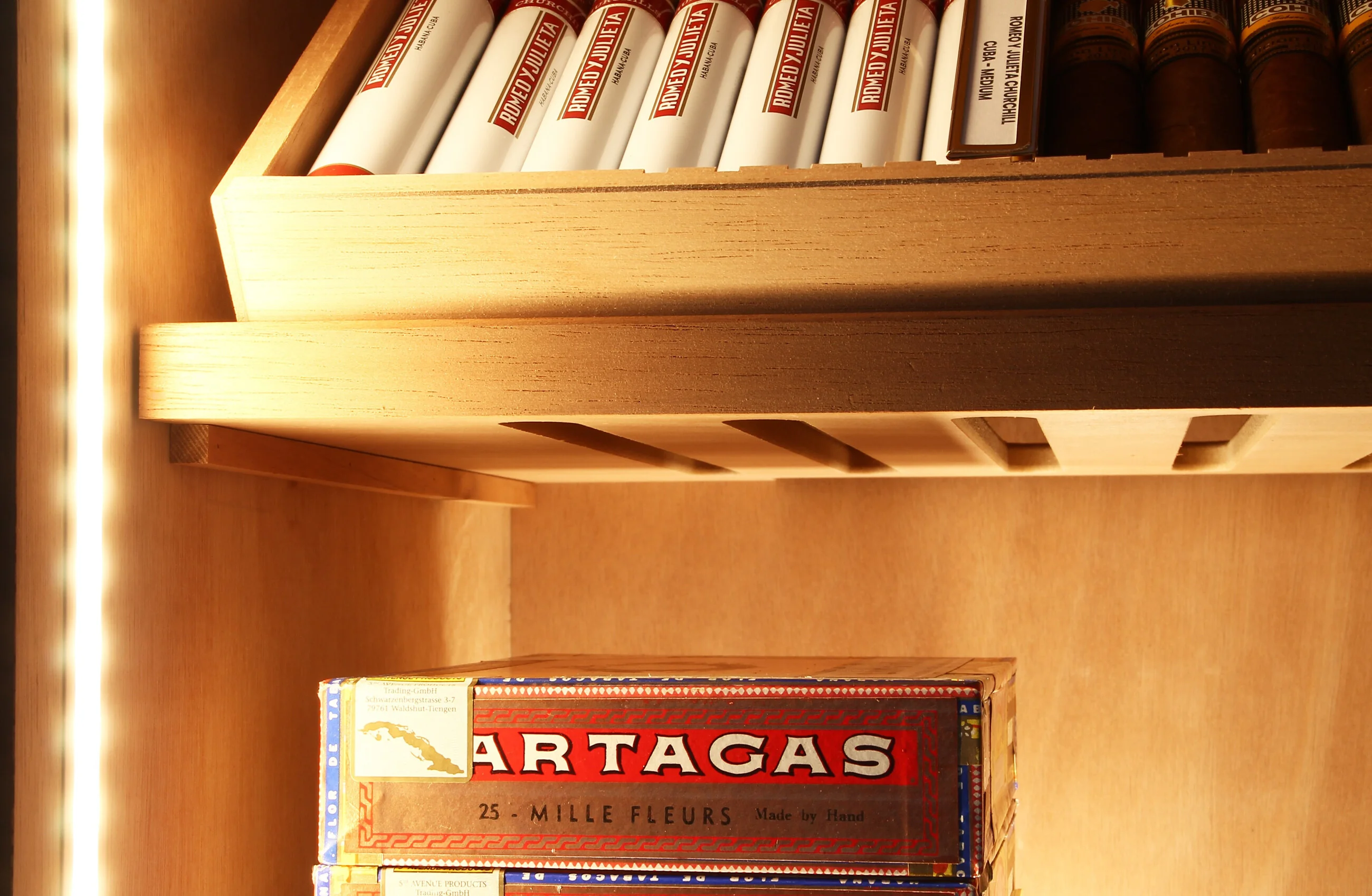 Remote Control for LED Lighting in adorini Roma, Portofino and Capri Cabinet Humidors Enhance the ambiance of your adorini Roma, Portofino or Capri cabinet humidor with our remote control for LED lighting. This remote control provides convenient control of the lighting to stylishly showcase your precious cigars. Included in the package is a connection cable for easy installation. The button battery for the remote control is already included, allowing you to activate your lighting system right away. The remote control stands out for its user-friendliness and self-explanatory features. Effortlessly, you can dim the light in your humidor in 9 different levels to create the perfect atmosphere. Additionally, the pulse function is integrated to generate a fascinating visual effect and attract attention. Not only can you dim the light, but you can also conveniently control the on and off function using the remote control. Alternatively, turning the light on and off is also possible directly on the cabinet itself, providing you with maximum flexibility. Expand your control over the lighting in your adorini humidor with this practical remote control and create an impressive presentation for your cigar collection.